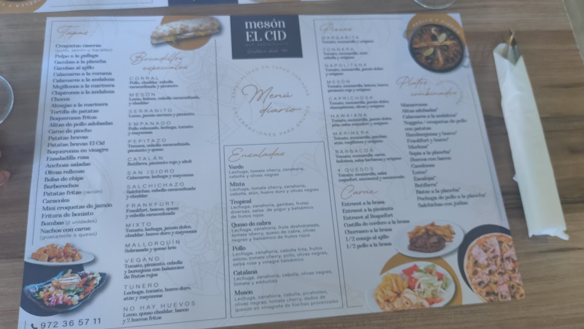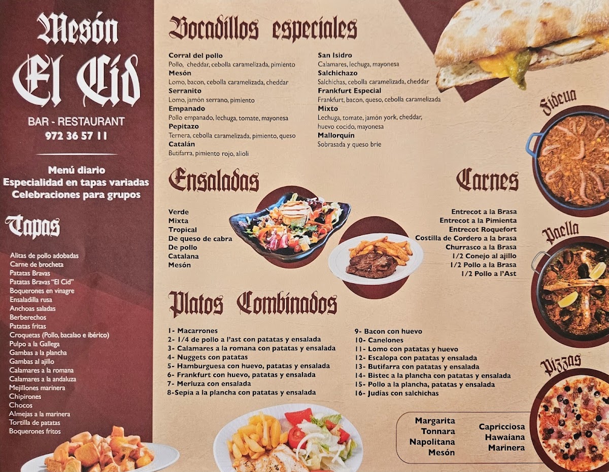 Welcome to Mesón El Cid, a culinary gem nestled in the heart of Lloret de Mar, Girona. Our menu is a celebration of fresh, robust flavors designed to delight every palate. With plates that honor quality ingredients, you'll find everything from vibrant salads to expertly crafted main dishes.